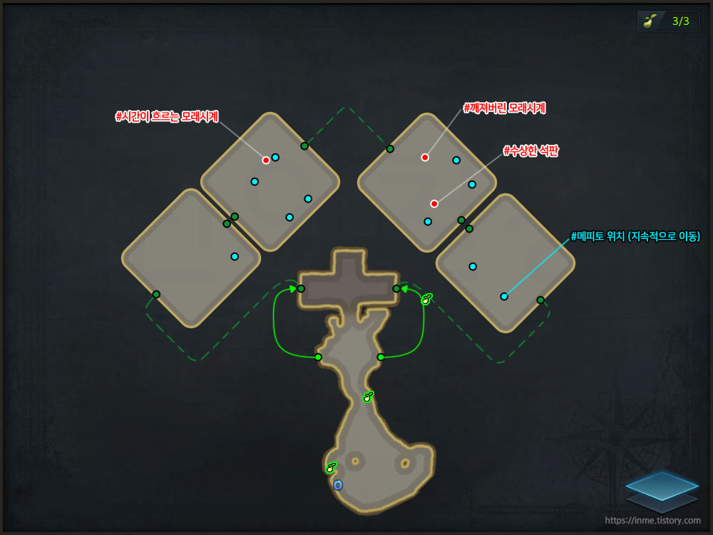 왜곡된 차원의 섬은 지도가 없어서 임의적으로 만든 지도 입니다. 참고용으로만 사용해 주시면 좋겠습니다.