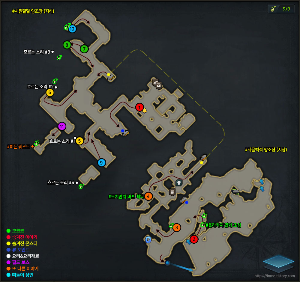 9번 위치 이동 후 파이프를 널러와 비밀공간으로 들어갈 수 있습니다. 비밀공간으로 이동 후 "흐르는 소리#4" 버프와 모코코를 수집해주세요.