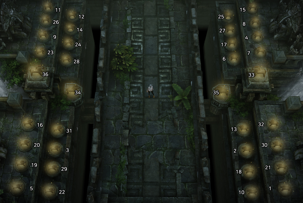 만약 퀘스트를 중간에 놓치게 되면 제단에서 진행된 퀘스트의 상황을 확인하실 수 있습니다. 이곳에서 퀘스트가 완료된 말의 경우 저렇게 제단에서 빛나는 형태로 배치가 되도록 되어 있습니다. 큰 말 퀘스트(33, 34, 35, 36)의 경우 작은 말 퀘스트가 완료 되어야 진행 가능하니 참고해 주시기 바랍니다.