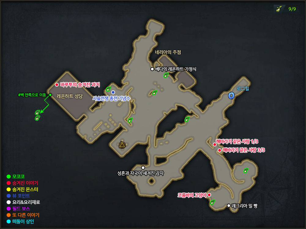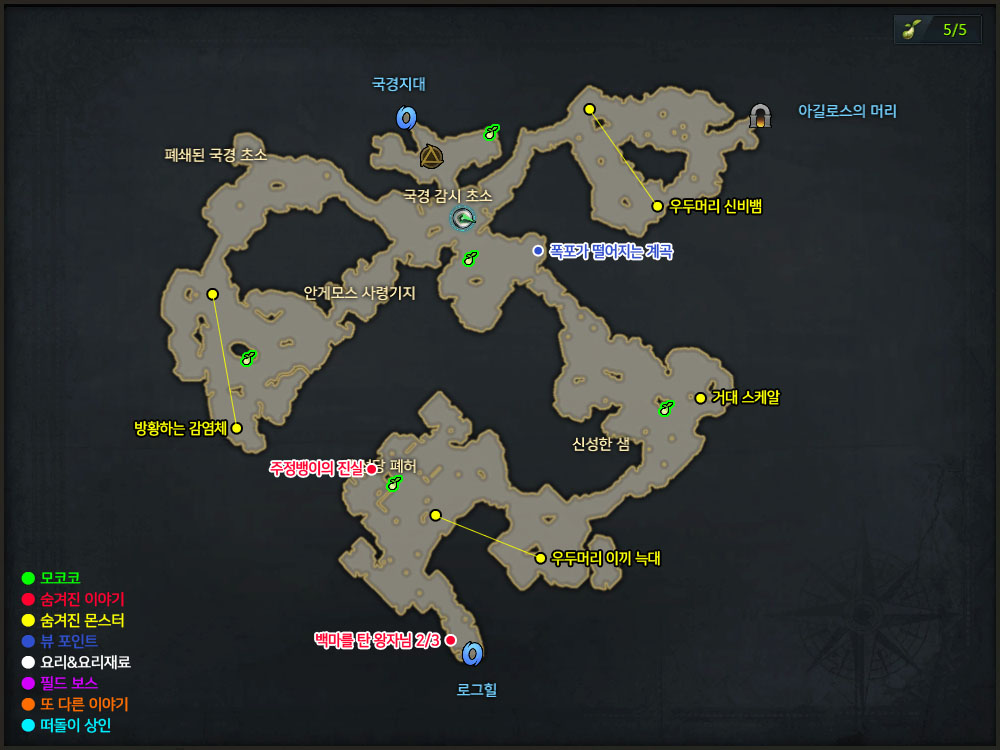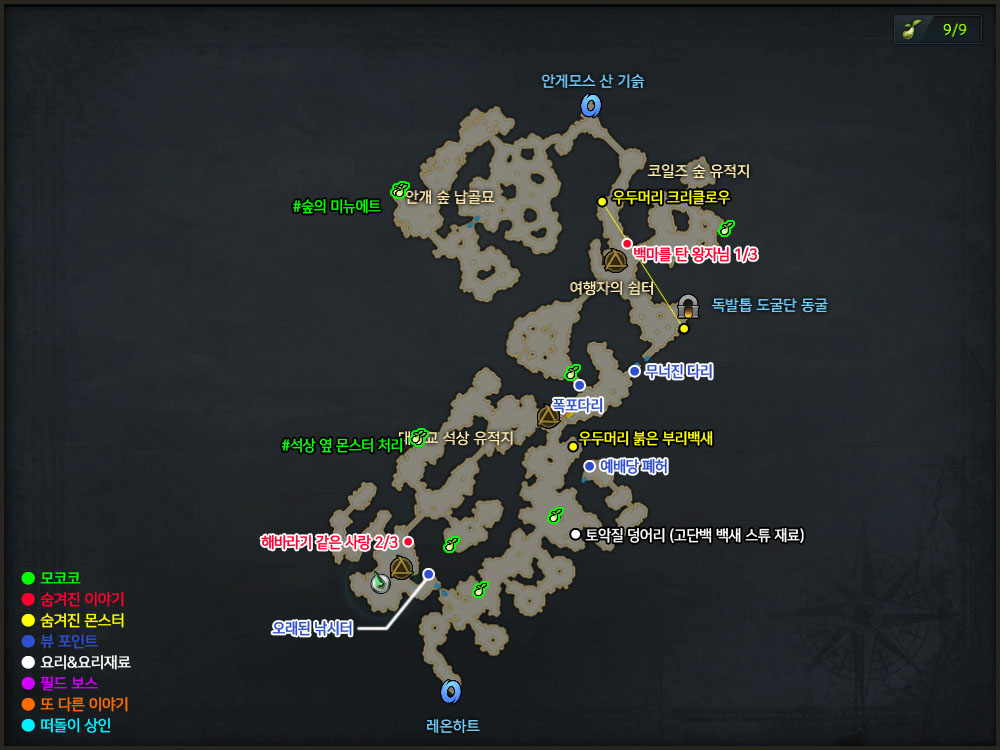 | 숨겨진 몬스터 | 로드릭 (필드보스) 우두머리 송장벌레 우두머리 브룩 우두머리 살점거미 |