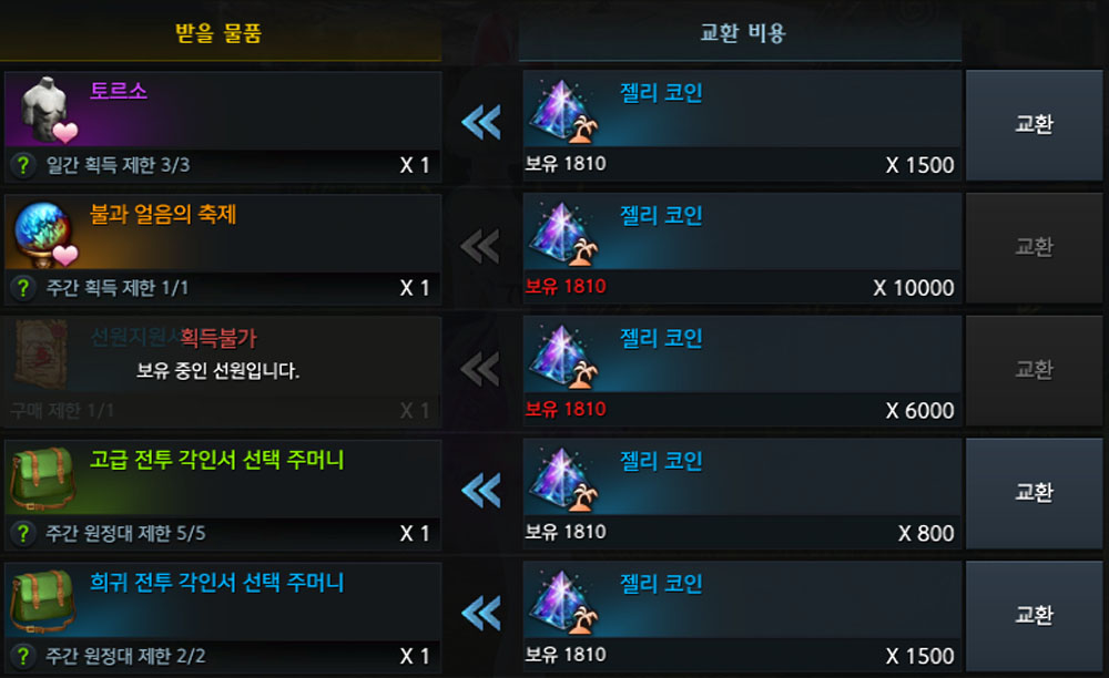 (보석은 보통 2개 이상 드랍하여 생각보다 빠르게 모으실 수 있습니다)