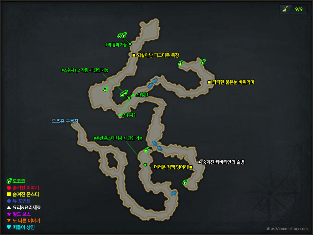 | 숨겨진 몬스터 | 되살아난 피그미족 족장 타락한 붉은눈 바위악마 더러운 점액 덩어리 |