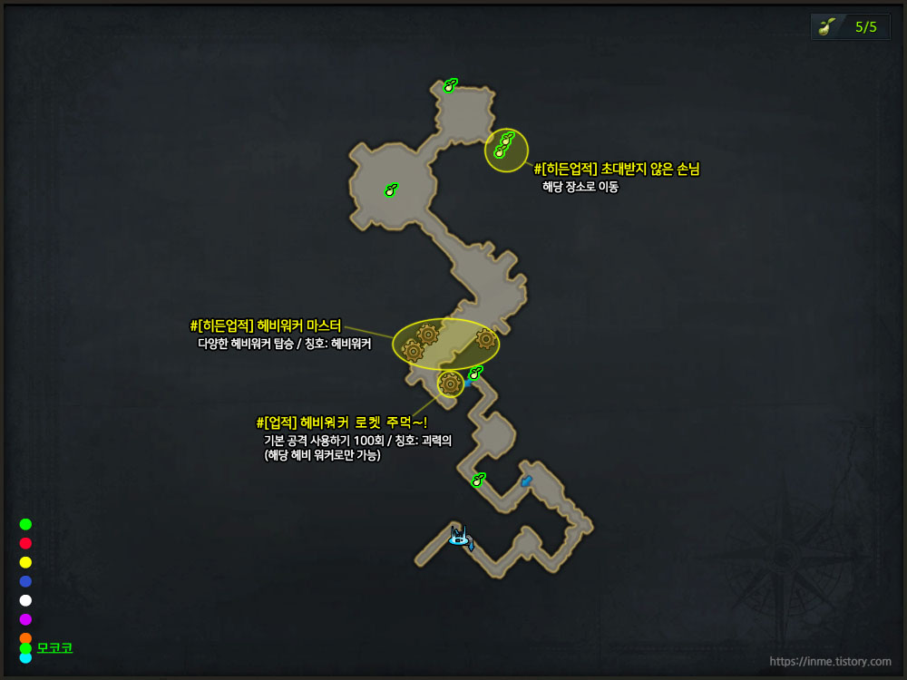 | 헤비워커 마스터 | 비밀스러운 연구실의 다양한 헷비워커 탑승하기 (히든) | 3 | 칭호: 헤비워커 |